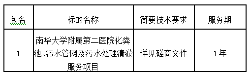 项目名称:南华大学附属第二医院化粪池、污水管网及污水处理清淤服务项目