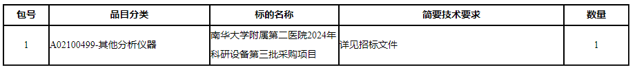采购项目名称:南华大学附属第二医院2024年科研设备第三批采购项目