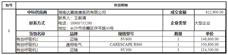 南华大学附属第二医院的南华大学附属第二医院呼吸机采购项目重新立项公开招标采购项目于2025年01月03日结束,现将中标(成交)结果公告如下: