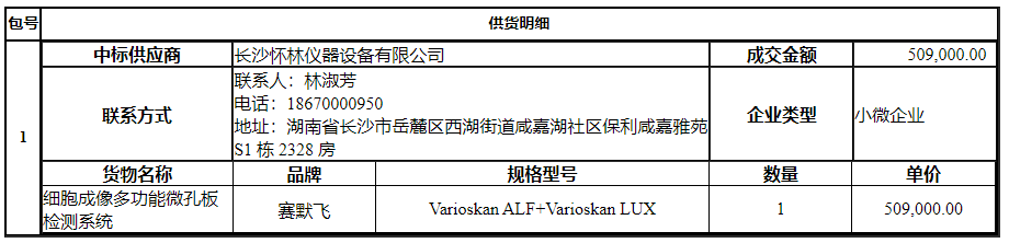 南华大学附属第二医院细胞成像多功能微孔板检测系统采购项目中标(成交)公告