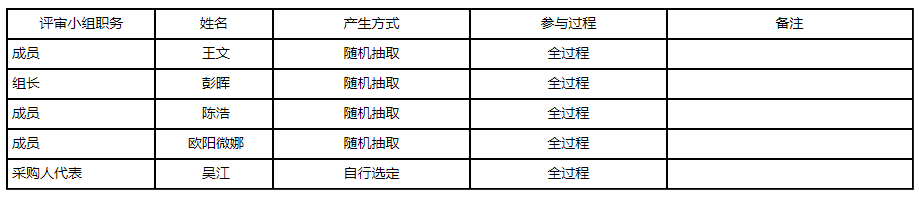 注:产生方式注明是随机抽取或自行选定;参与过程注明是确定供应商、谈判或全过程。