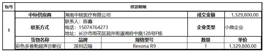 南华大学附属第二医院的南华大学附属第二医院彩色多普勒超声诊断仪采购项目公开招标采购项目于2025年08月22日结束,现将中标(成交)结果公告如下: