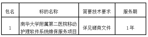 项目名称:南华大学附属第二医院移动护理软件系统维保服务项目
